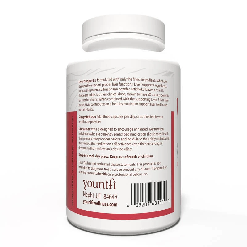 Vivia liver support is formulated from herbs with a long history of interacting with the liver protectively while at the same time utilizing scientifically proven extracts shown in clinical studies to support liver function. The strength of Vivia’s liver-supporting capability is not a detox product but, instead, a product that supports the liver’s natural detox pathways, making it, so the liver is capable of performing its essential functions daily. The combination of cruciferous vegetables, bioflavonoids, silymarin, bisphenols, and liver-supporting minerals is proven to support both phase â… and phase â…¡ pathways of the liver, helping it perform at an optimal level.Â